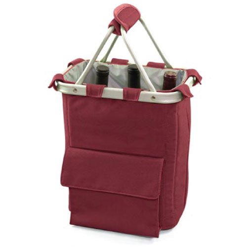 - Modern tall insulated picnic basket in burgundy can hold up to three bottles of wine